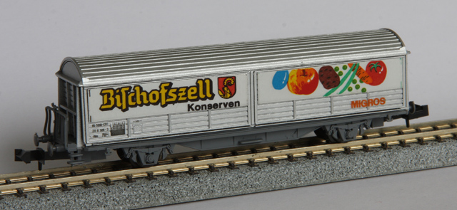 |  |  | PA 13 | SBB | Hbis | 21 85 211 8 328-3 | grau - Schiebewandwagen "Migros - Bischofszell Konserven" | IV | 92 |  |